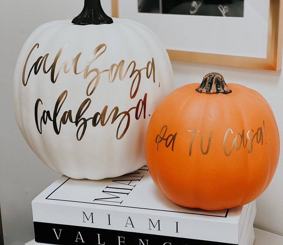 Mini would be the PA TU CASA reference, Standard is our white pumpkin that says Calabaza, Calabaza!
