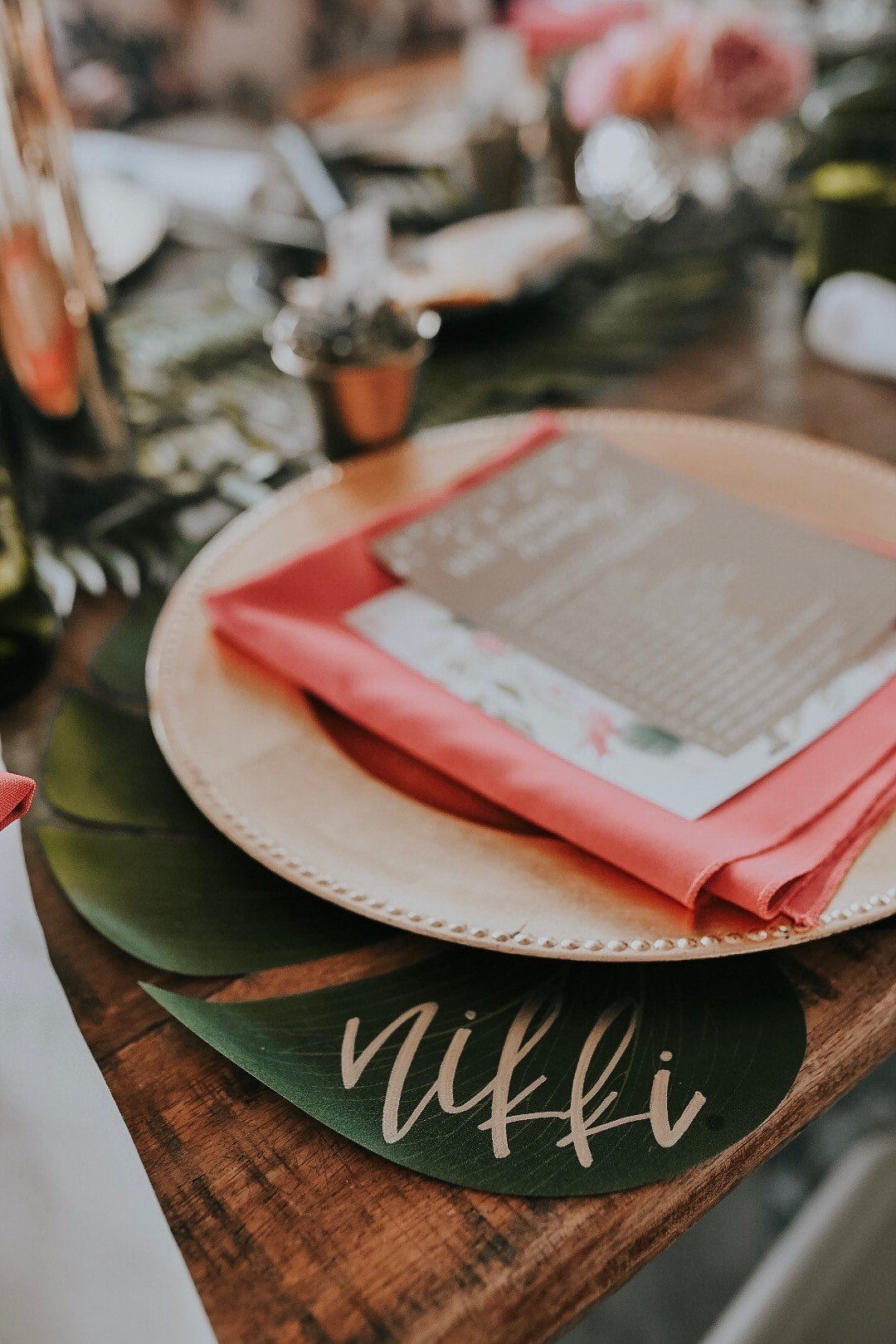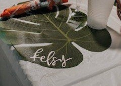 13" Palm Leaf Large palm leaf place cards. Can add: First name Last name Table Number Ink Colors: White Gold Silver Timing: two weeks. please, when purchasing add what you would like the palm leafs to say in the "notes to seller". feel free to contact me for any questions.