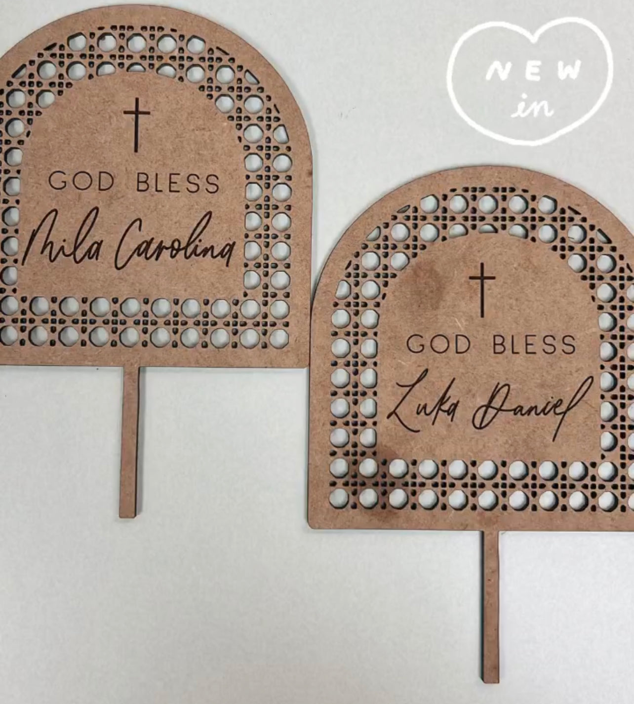 Customize your cake topper with wording, name, occasion, & date. Will be engraved based on what you provide. Font options apply to names only.